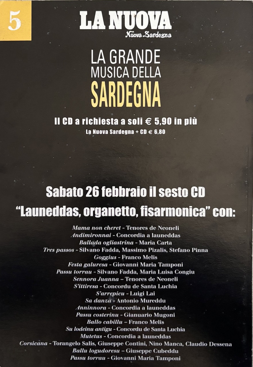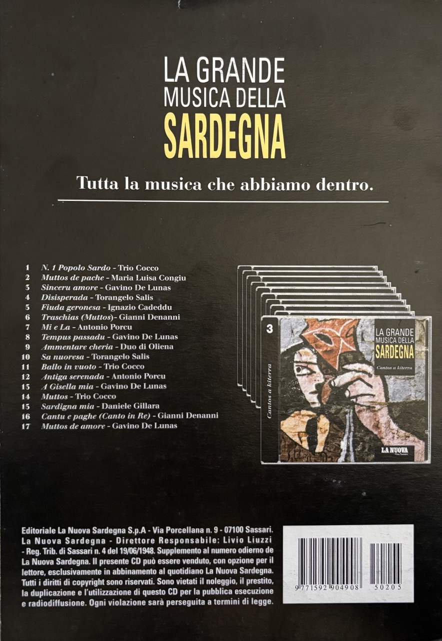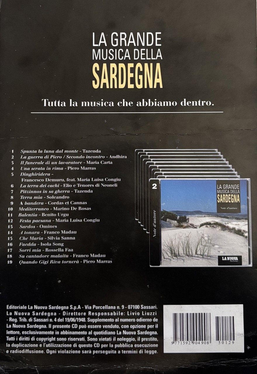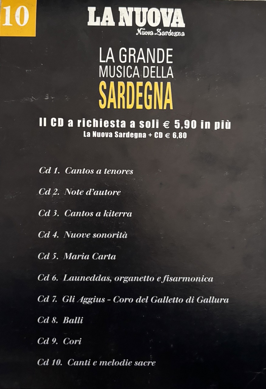 collaborazione che la Tronos(punto di riferimento dell’ isola) ebbe nel 2005, con il gruppo editoriale della Nuova Sardegna per creare una raccolta di generi e artisti chiamata “La grande musica della Sardegna”, un abbinamento editoriale, quotidiano La Nuova Sardegna + CD, una raccolta, un pilastro identitario, una collana, oggi definita playlist di 10 CD che raccoglie il patrimonio musicale sardo.