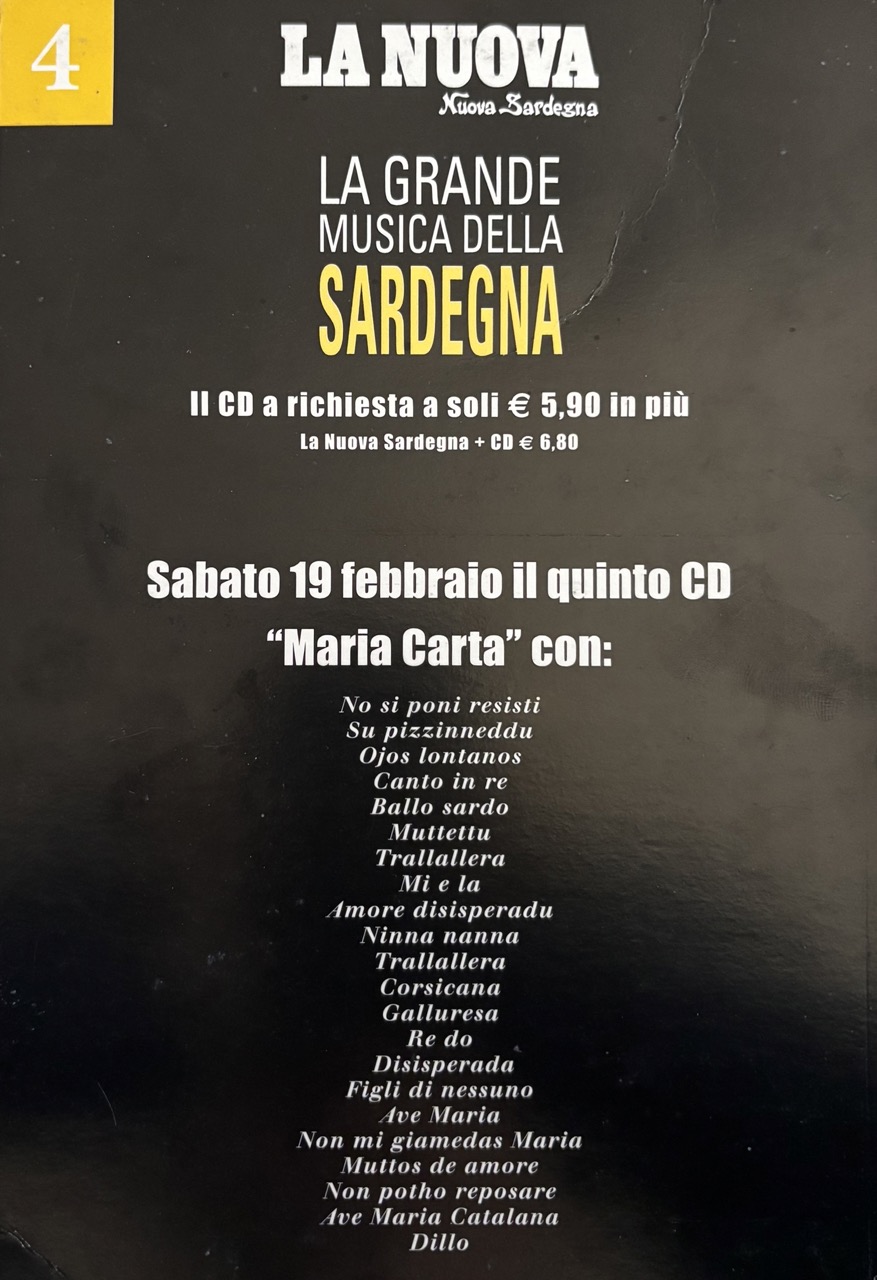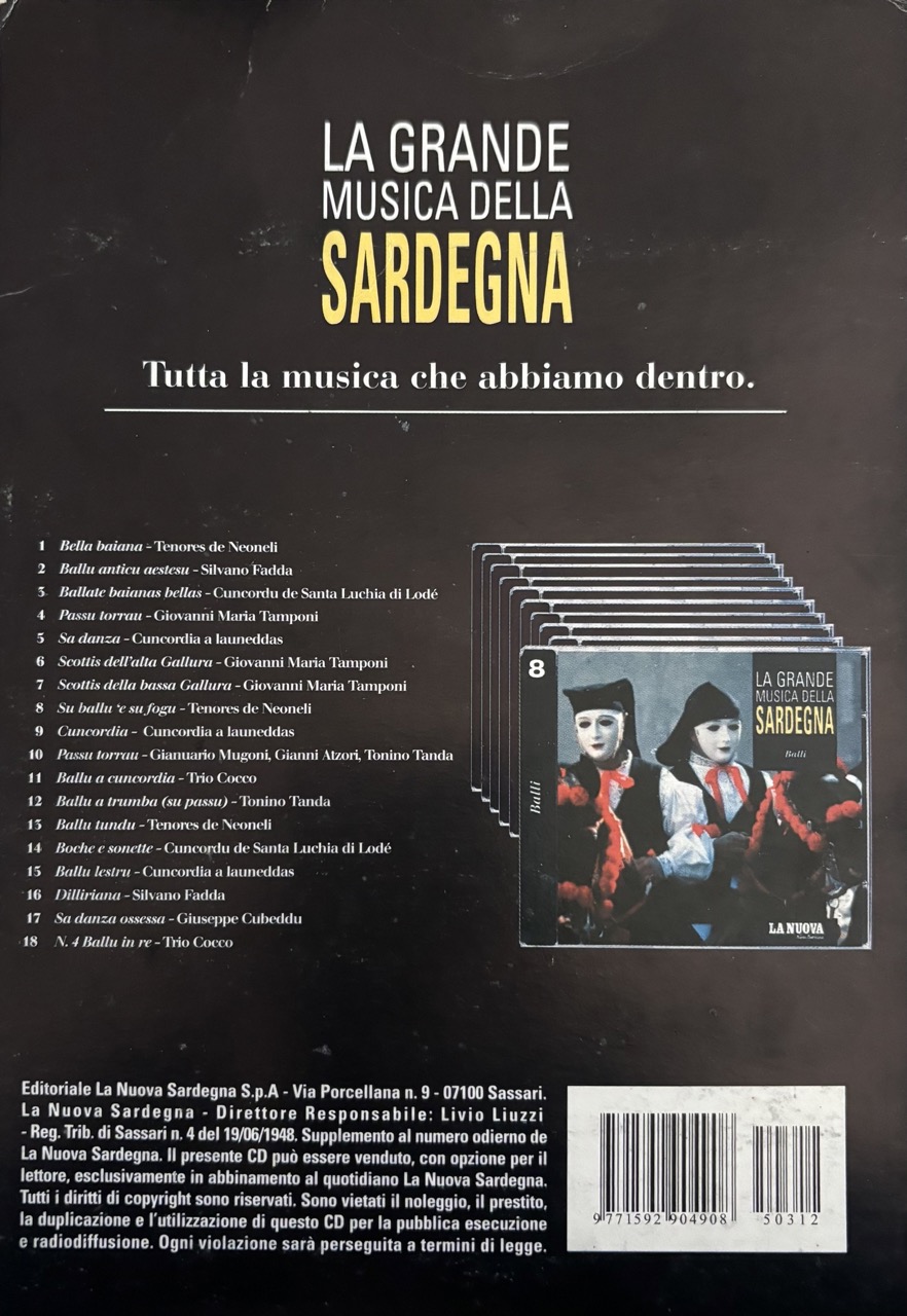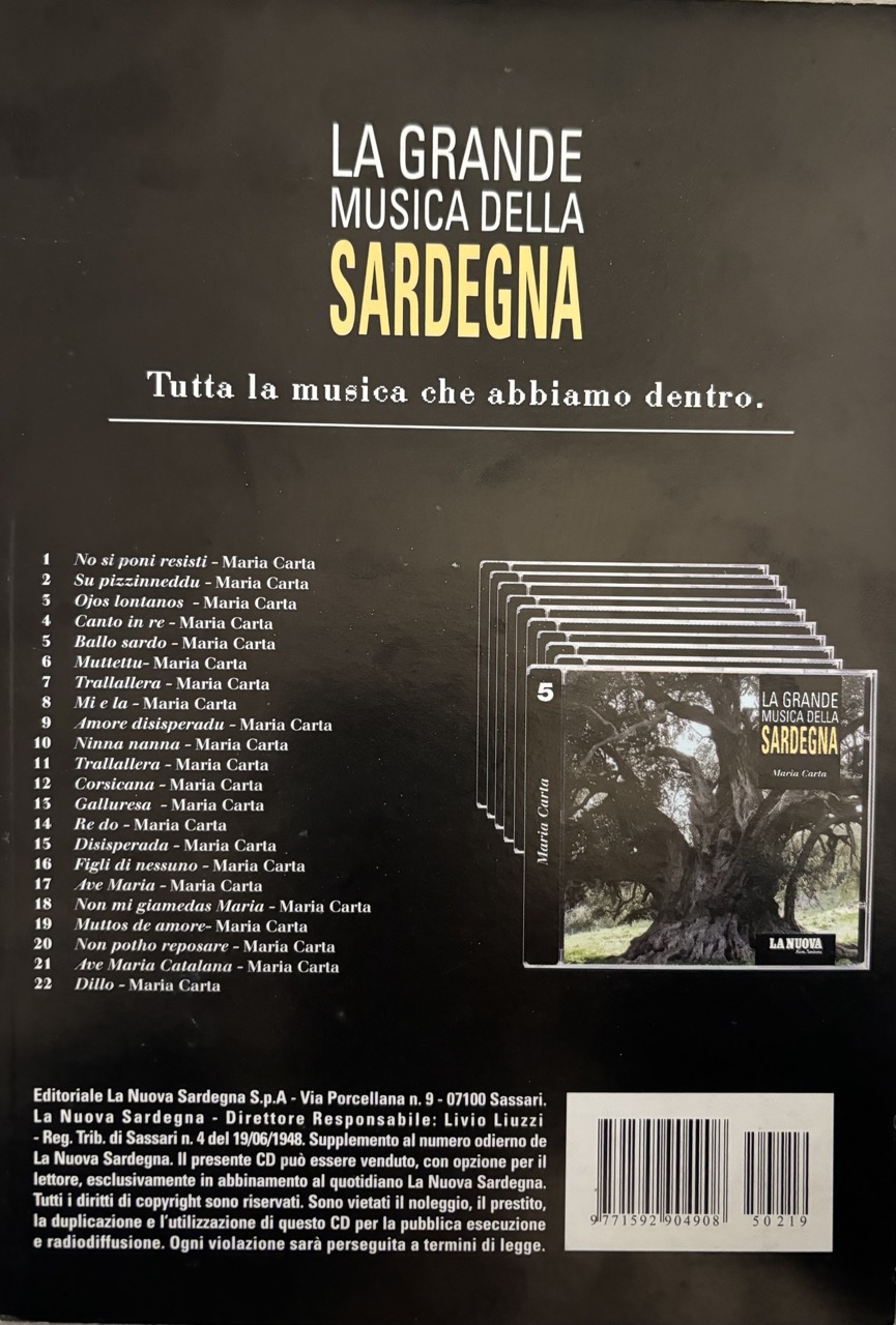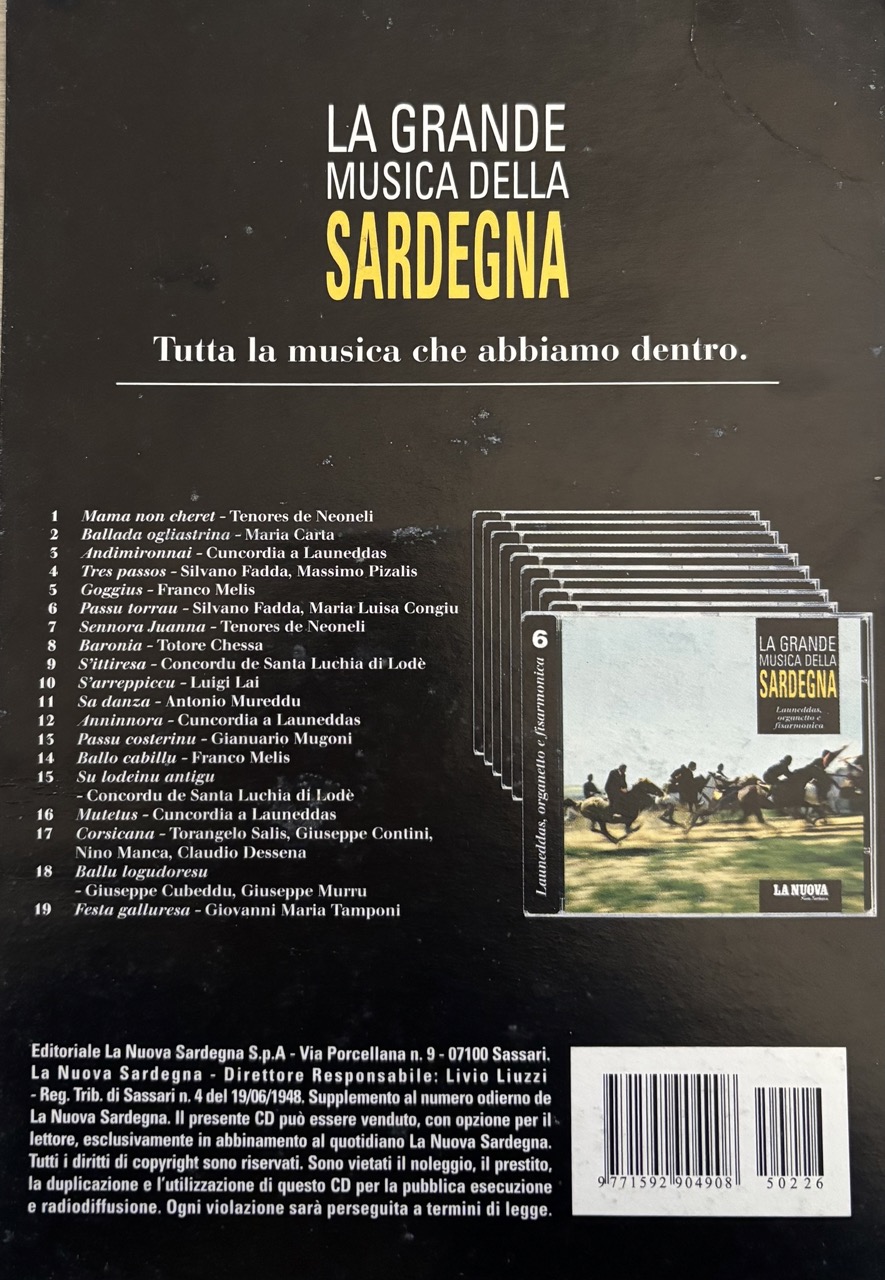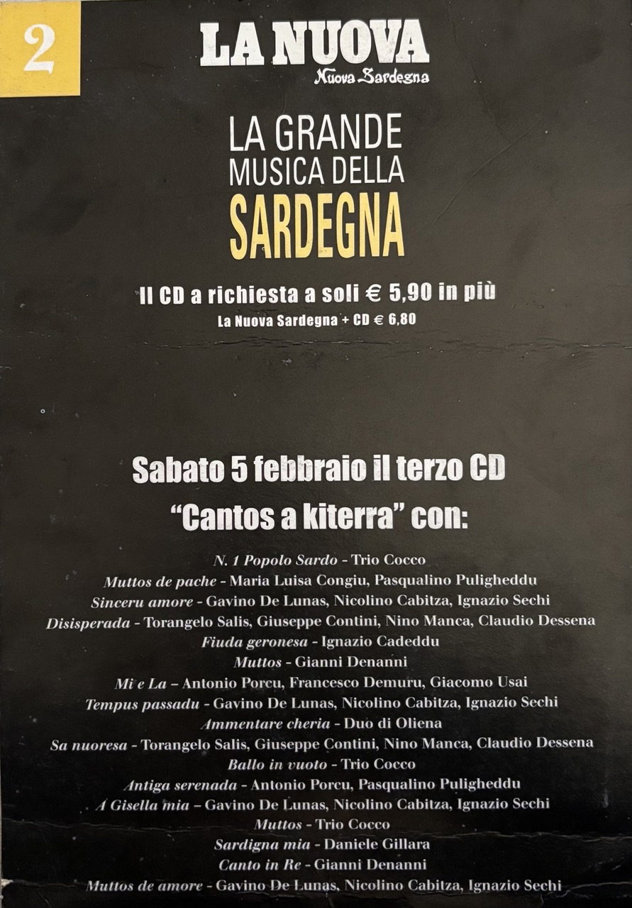 collaborazione che la Tronos(punto di riferimento dell’ isola) ebbe nel 2005, con il gruppo editoriale della Nuova Sardegna per creare una raccolta di generi e artisti chiamata “La grande musica della Sardegna”, un abbinamento editoriale, quotidiano La Nuova Sardegna + CD, una raccolta, un pilastro identitario, una collana, oggi definita playlist di 10 CD che raccoglie il patrimonio musicale sardo.