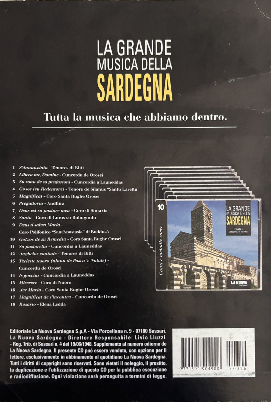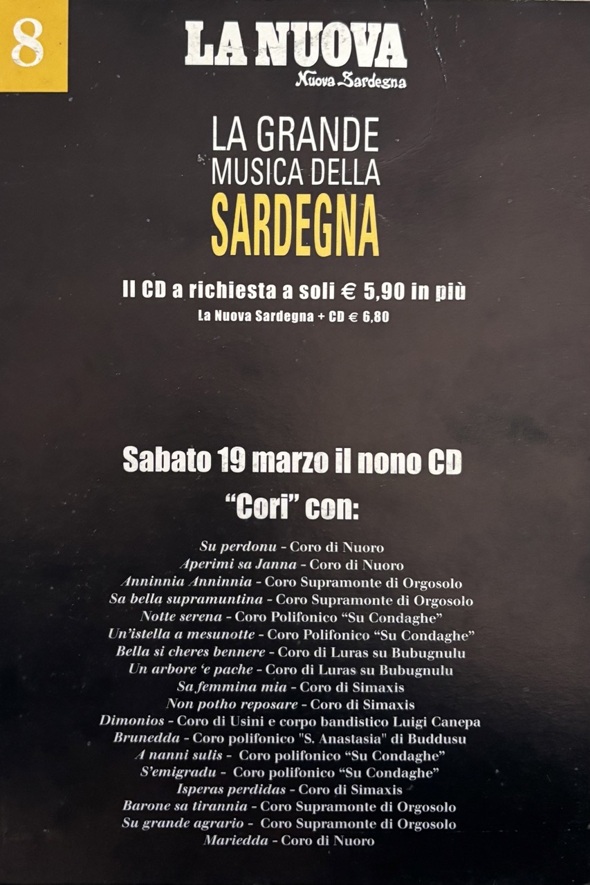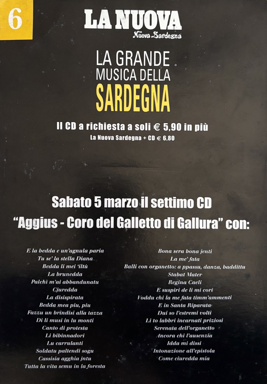 Cori – repertorio dei cori tradizionali inclusi quelli di Aggius e il coro del Galletto di Gallura.